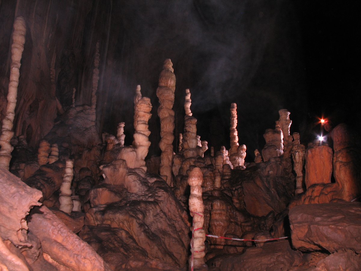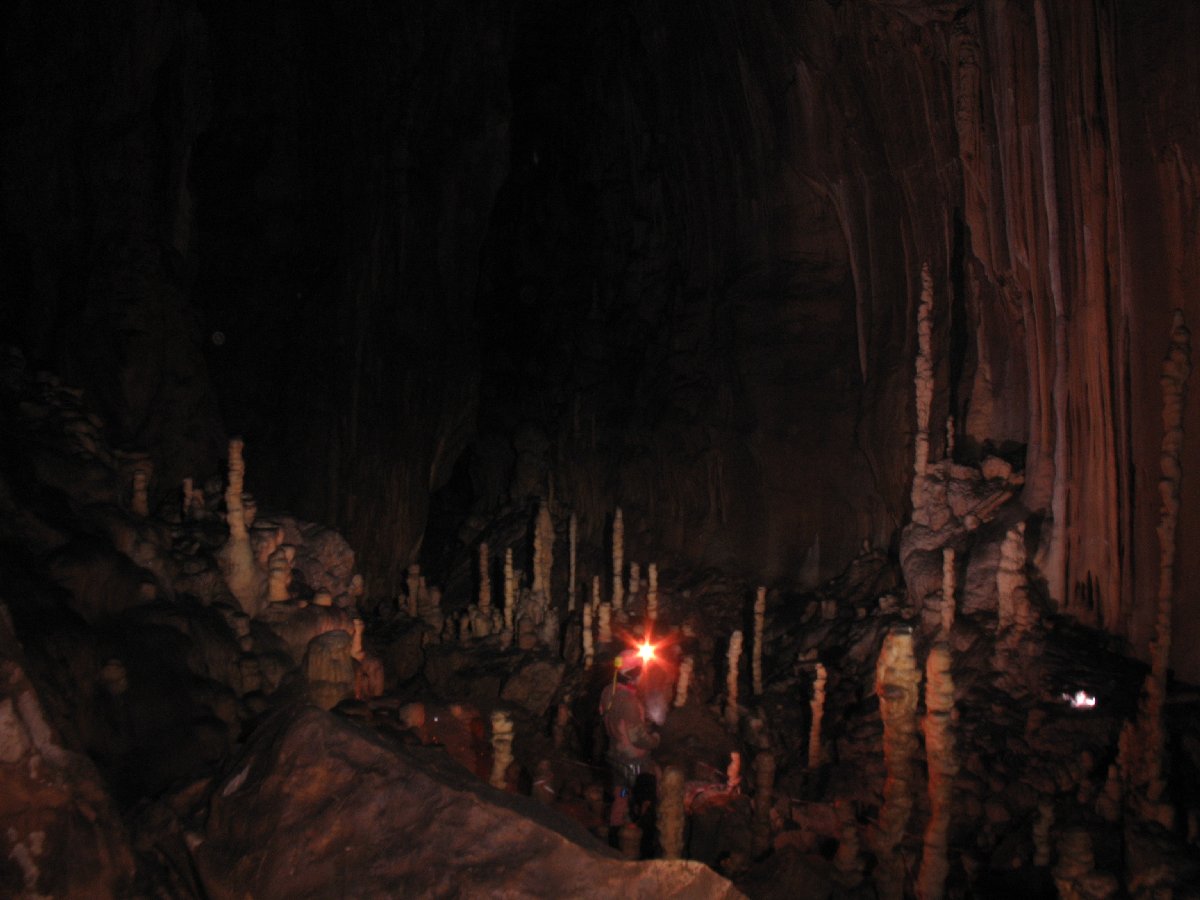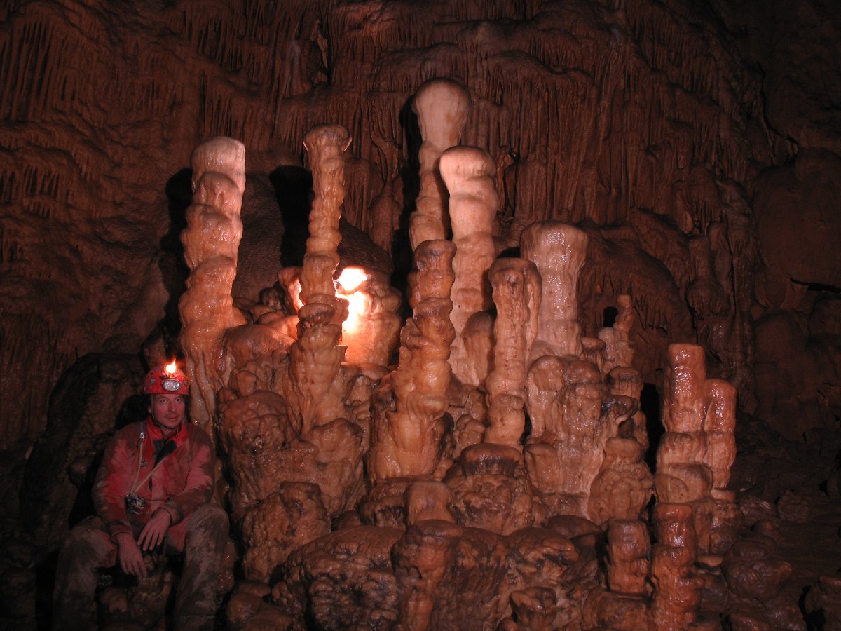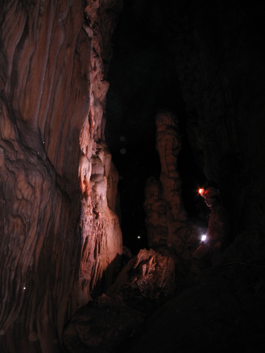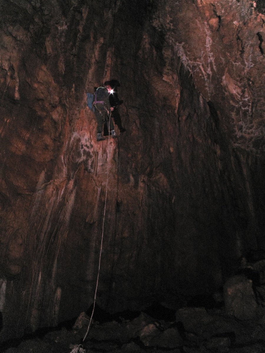Der Gouffre des Ordons ist eine der schönsten Höhlen im französischen Jura. Über eine kleine Spalte seilt man sich zum Einstieg in eine riesige Halle ab. Von dort aus schwebt man, frei hängend am Seil, in die Dunkelheit hinab. Es ist ein grandioses Gefühl als erster abzuseilen und in der Finsternis die Weite der Halle zu spüren und zu beobachten, wie sich langsam die Umrisse der riesigen Kerzenstalagmiten abzeichnen. Inzwischen ist die Höhle viel begangen und die Schönheit der einst sauberen Sinterformationen leidet unter dem Besucherstrom.