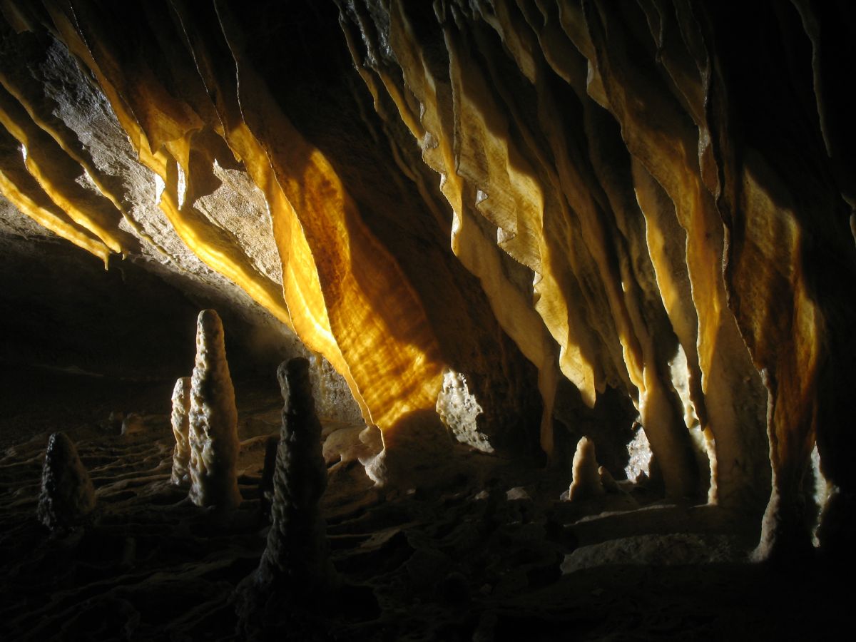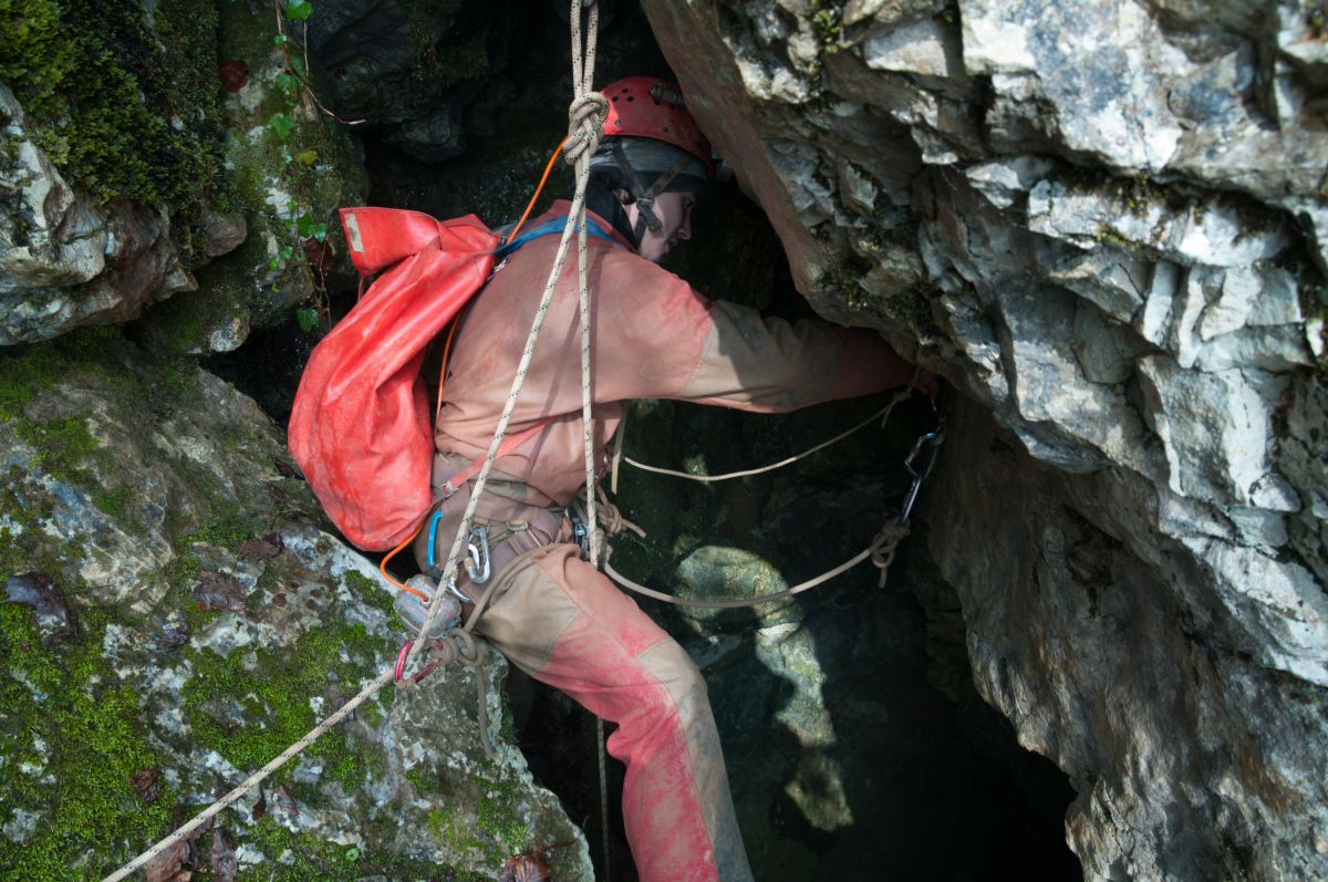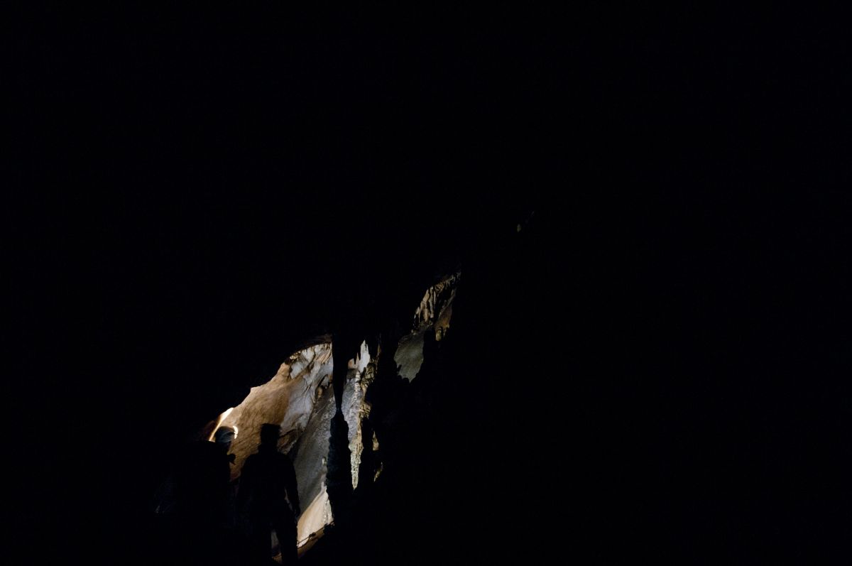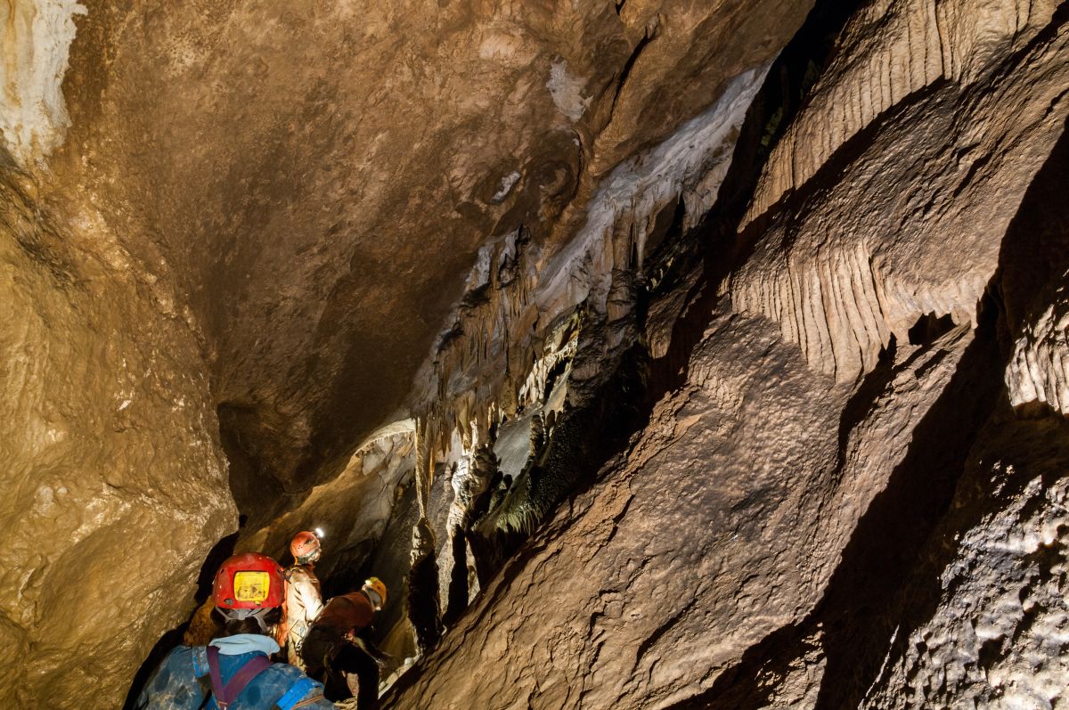 Der Gouffre de Vau besteht aus einem 44 Meter tiefen Eingangsschacht und einem wunderschönen Horizontalgang. Am Schachtgrund trifft man normalerweise auf einige Feuersalamander und man muss gut aufpassen, wo man hintritt. Der sich anschließende Gang ist reich geschmückt und man findet vor allem sehr schöne Sinterfahnen aber auch alle andern gängigen Sinterformen. Im hinteren Bereich setzt dann noch eine Schachtfolge ein. Wir sind die ersten beiden Schächte abgeseilt und hatten dann nicht mehr genügend Seile dabei, um noch weiter vorzudringen. Zu bemerken ist jedenfalls, dass mit den Schächten die Schönheit der Höhle schlagartig aufhört und man in lehmige, ungeschmückte Passagen gelangt. Die untere Etage soll extrem verlehmt sein.
