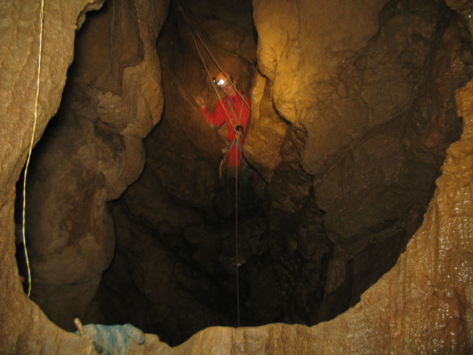 Wenn man den Einstieg tatsächlich gefunden hat, hat man eine schöne, ausgewaschene Schachthöhle vor sich, die nicht ganz einfach zu befahren ist. Wenn man die Schachtstufen überwunden hat, setz unten ein lehmiger Schluf an, in den man hineinkriechen muss, falls man den Tropfstein der Höhle sehen möchte.