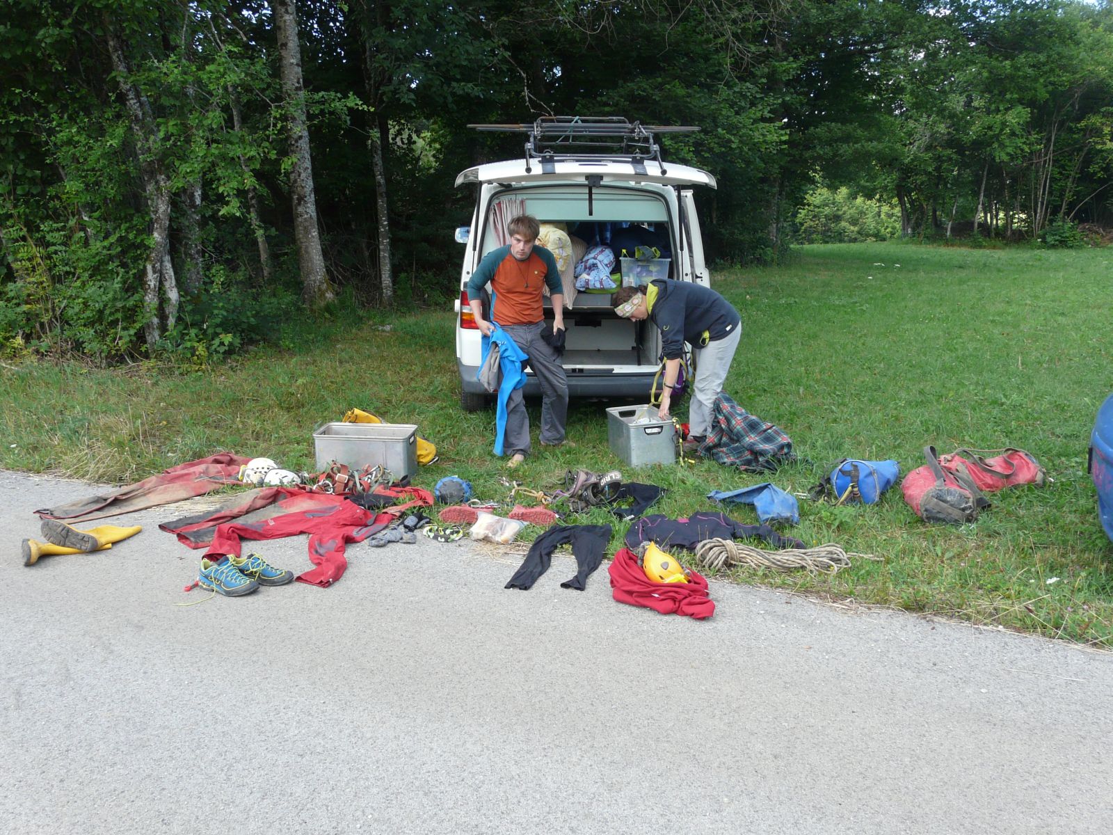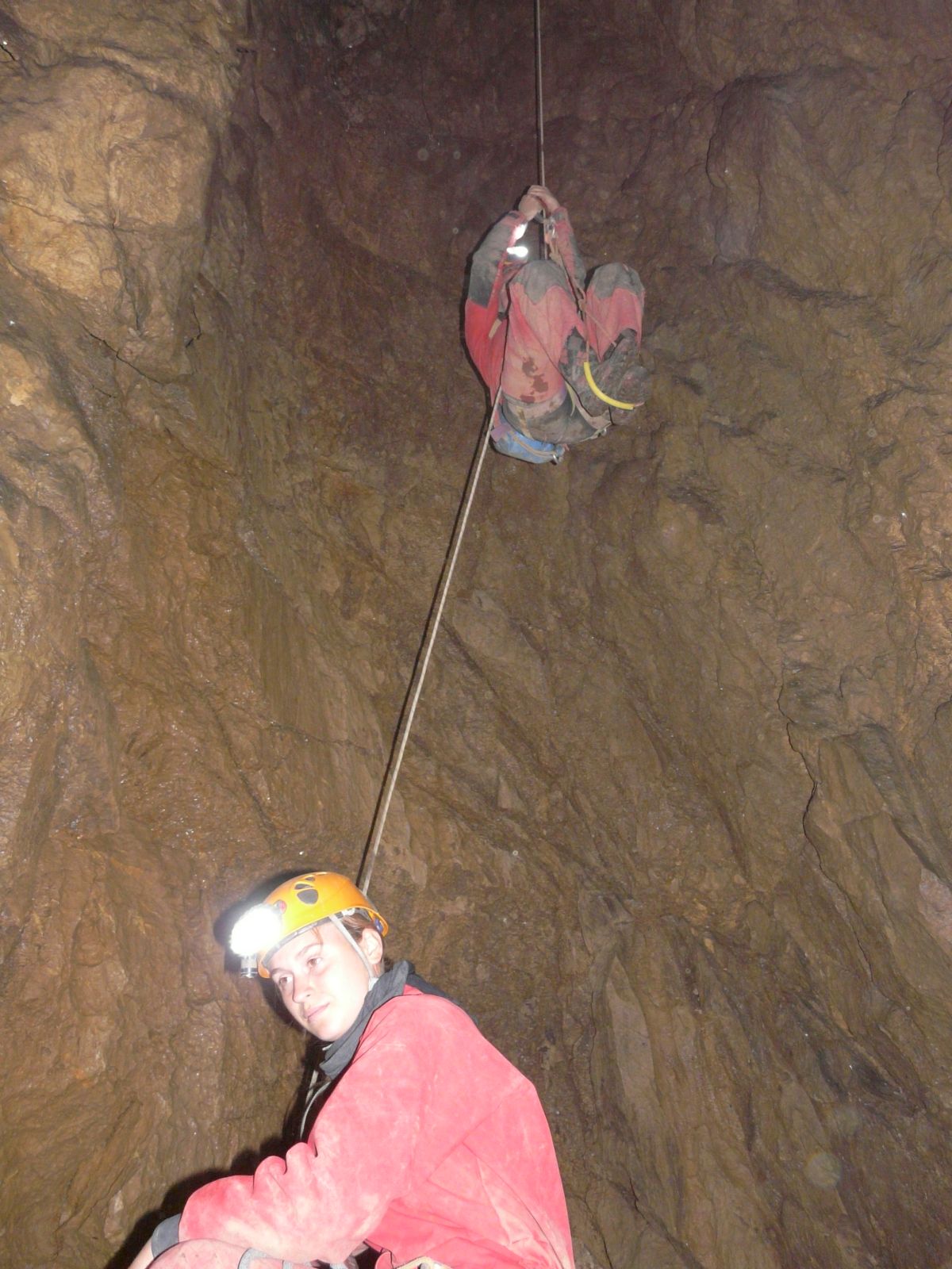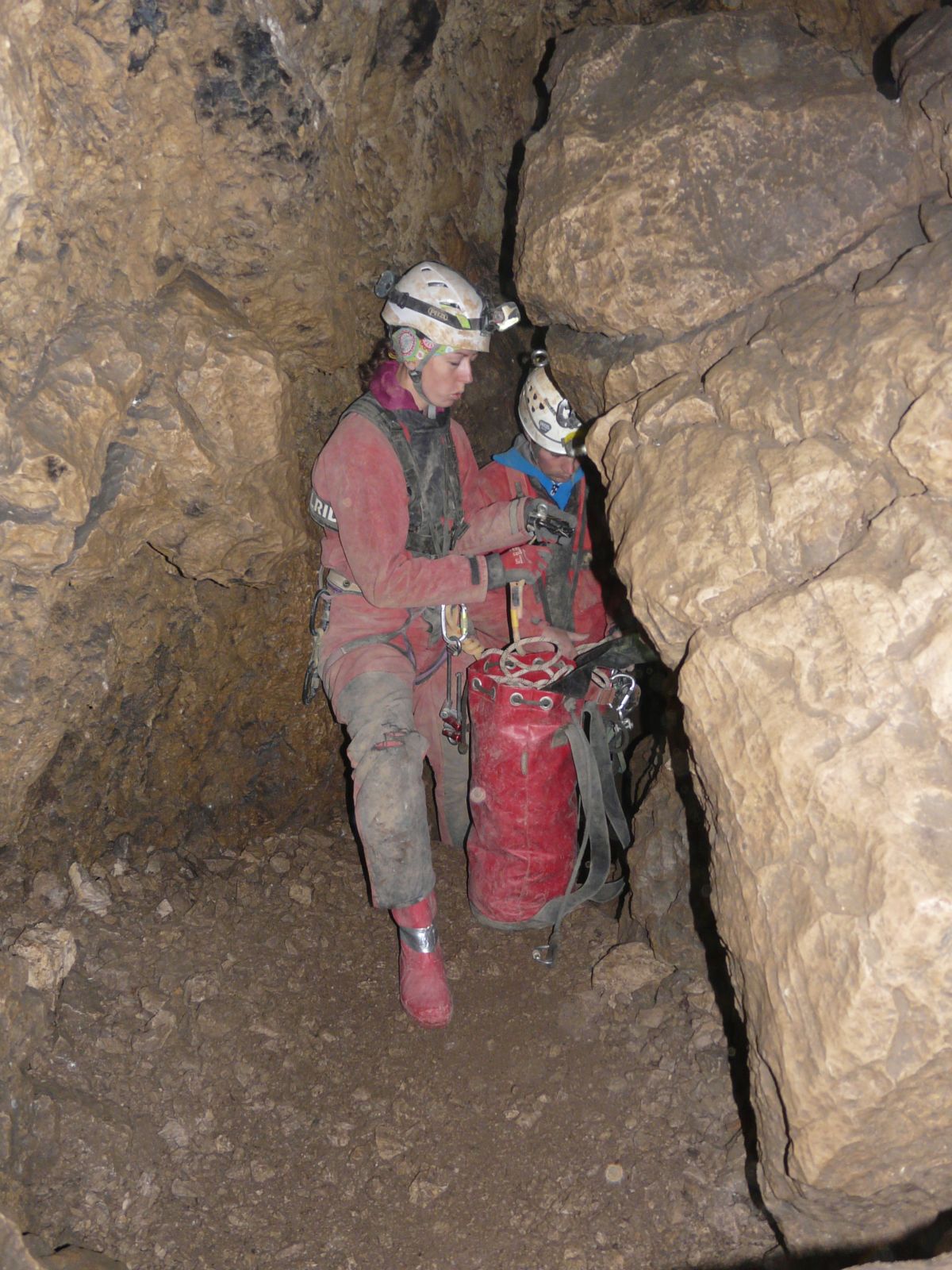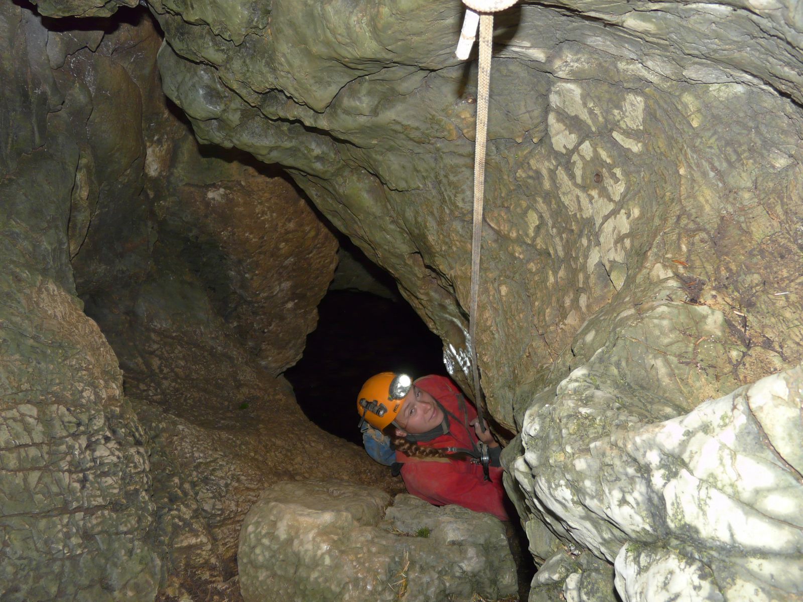Der Gouffre de la Legarde ist ein bröckelige Angelegenheit. Überall liegt loses Geröll herum. Teilweise wurden die Halden mit Drahtgittern verbaut, um den Abgang von großen Massen zu verhindern. Wir sind aus dieser Höhle schnell wieder geflohen und werden auch nicht mehr hineingehen. Die Steinschlaggefahr ist hier relativ groß und es gibt so viele, sicher zu befahrende Höhlen in der Gegend, da muss diese Schotterhalde nicht auch noch auf unserem Programm stehen.